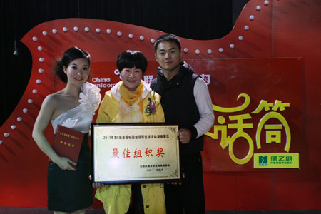 4月10日晚上,第五届“校园金话筒”湖南赛区总决赛在湖南教育电视台举行,我院选手在比赛中再创佳绩,孙伊黎和王菲获得银奖,陈铭获得铜奖,同时我院还获得第五届“校园金话筒”湖南赛区最佳组织奖。