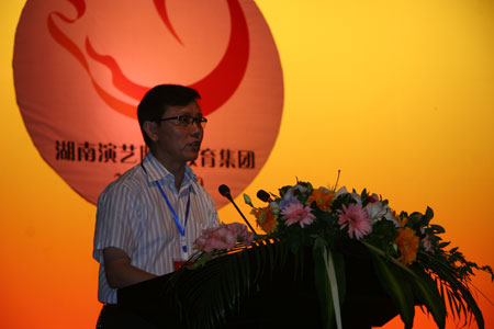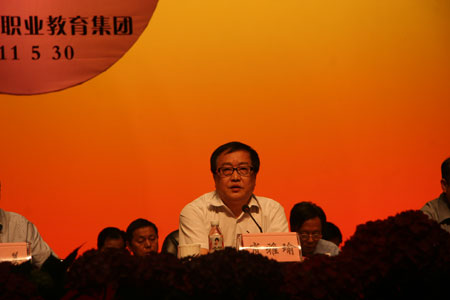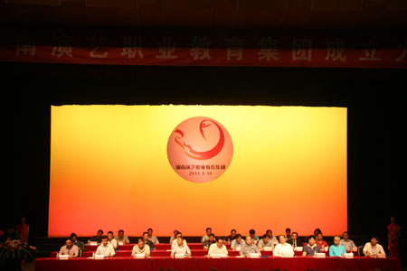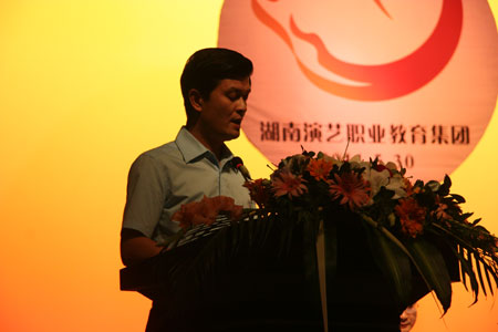 在大会上省教育厅职成处处长张大伟宣读了湖南省教育厅《关于成立湖南演艺职业教育集团的批复》;学院副院长余会春宣读了《关于成立湖南演艺职业教育集团建设指导委员会的通知》;湖南演艺职业教育集团牵头单位学院院长鲁雁飞做了筹建工作报告;省文化厅人事教育处处长王崇福宣读了文化部文化科技司的贺信;企业代表天下凤凰文化传播有限公司董事长叶文智致辞。