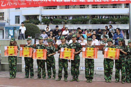学院领导分别为获得歌咏大赛、内务评比、优秀领队等的同学颁奖。至此,为期12天的2011级新生军训圆满结束。