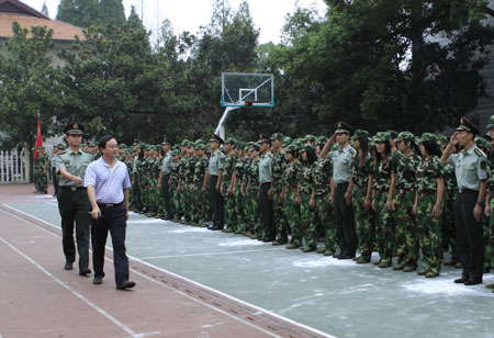 9月9日上午,英姿飒爽的2011级新生军训队伍凝聚了我院南院操场所有的目光,2011级新生军训阅兵式暨总结表彰大会在这里隆重举行,来自6个系的14个方阵接受检阅。学院领导易介南、鲁雁飞、黄宏玉、余会春、杨向东、刘家海、彭爱莲,国防科学技术大学指挥军官基础教育学院罗曦上尉等一同检阅了新生军训成果。大会由学生工作处处长欧阳锋主持。