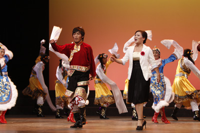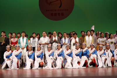 演出结束后,教育厅领导王键,SUNBET申搏领导鲁雁飞、余会春、周文清等与演职人员一起合影。