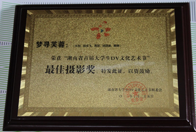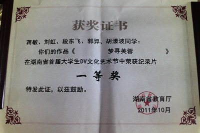 10月25日晚,从湖南省第三届大学生艺术节首届大学生DV节颁奖现场传来喜讯,我院影视系08级、09级编导电视节目制作、摄影摄像专业学生参赛的DV作品《梦寻芙蓉》荣获纪录片一等奖及本届艺术节唯一的最佳摄影奖、最佳纪录片奖;《人生若只如初见》荣获电视散文一等奖,《依》荣获DV剧一等奖。