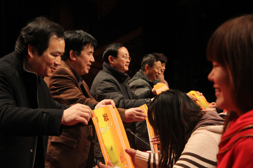 12月7日下午,学院在实验剧院举行了第五届国家奖学金、国家励志奖学金暨第七届“一代”、“田汉”奖学金颁奖大会。厦门一代佳人文化传播有限公司执行董事朱宗熹,学院党委书记易介南、院长鲁雁飞、纪委书记黄宏玉、副院长杨向东、工会主席彭爱莲及各系部处室主要负责人等出席大会。大会由学工处处长欧阳锋主持。