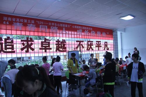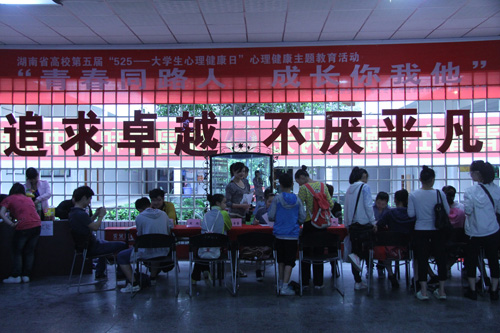5月25日,由学院心理健康教育中心主办,院心理协会承办的以“青春同路人、成长你我他”为主题的“525大学生心理健康日”活动在第二教学楼一楼大厅举行。