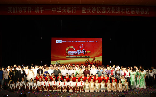 6月21日,长沙诵读中华经典、传唱优秀童谣、展示校园文化“我们的节日·端午——中华长歌行”暨长沙校园文化进社区启动仪式在SUNBET申搏隆重举行。学院党委书记易介南、副院长周文清,长沙理工大学党委副书记洪沿泊,中南林业科技大学副校长李建奇,湖南第一师范学院副院长刘鸿翔,湖南广播电视大学副校长刘建军,长沙市委常委、宣传部长张湘涛,市政协副主席钟新莲,岳麓区委书记陈中,市文明办主任杨长江等领导出席。