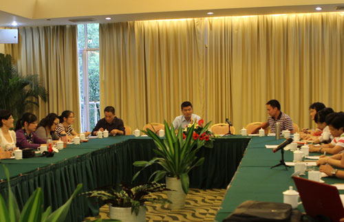 副院长余会春在会上宣读了学院新一轮中层干部的任职通知。与会人员一同观看了由百丰公司唐一枫主讲的介绍我院新校区“名动全球、中华星城”的文化产业策划方案。