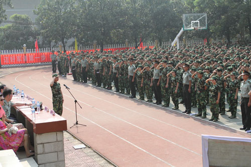 国防科技大学蔡学武上校对本次军训做了要求,参训学生代表和参训教官代表分别作了表态发言,全体新生就军训进行了宣誓。