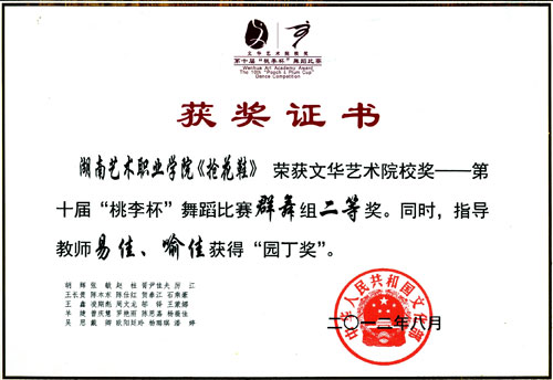 8月26日晚,全国第十届“桃李杯”舞蹈比赛在合肥圆满落幕,经过7天紧张激烈的角逐,由我院舞蹈系编创的舞蹈《抢花鞋》从进入决赛的75个节目中脱颖而出,喜获“文华艺术院校奖”群舞组二等奖,喻佳、易佳两位老师荣获“园丁奖”。