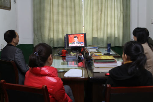 上午9:00,各党支部、各部门纷纷号召本部门党员、干部,通过电视或者互联网收看开幕式直播。教务处还积极协调日常教学安排,组织学生党员集中观看十八大开幕,大家认真聆听,做好记录。直播过程中,现场气氛热烈,不断爆发出阵阵掌声。