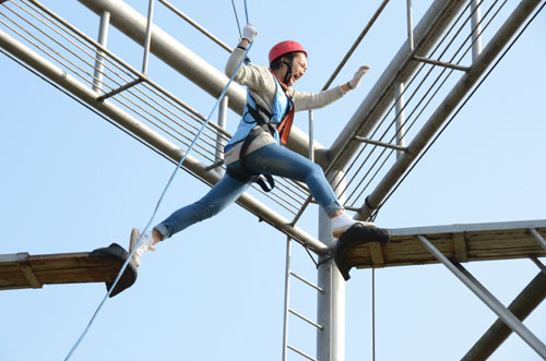 随后,拓展训练在“团队破冰”项目中正式开始,师生们分成四队进行训练。训练中,每一位队员都摒弃年龄、性别的差异,克服师生角色的不同,发扬不抛弃不放弃、团结一心、坚持不懈的精神,充满信心,激情昂扬,完成了“高空断桥”、“雷区取水”、“珠行千里”以及“翻越救生墙”等一系列拓展项目。大家都深深的体会到互帮互助、同心协力的团队力量,伴随着感动的泪水,每一位同学都发表了自己的感言,表示要将这种精神带到以后的学习和生活当中,使这个大家庭变得更加团结、和睦。