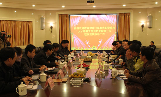 12月25日,2012年教育部人才培养工作水平评估专家组一行六人,在组长、武汉职业技术学院原书记、院长马必学教授带领下来到我院,对我院的人才培养工作水平进行了现场评估。此次人才培养工作水平评估是按照教育部统一部署,严格按照教育部高职高专人才培养工作水平评估方案的要求,由湖南省教育厅组织实施。评估专家组由5名教育专家和1名企业专家组成。现场评估是以前一阶段网上评审为基础而进行的。