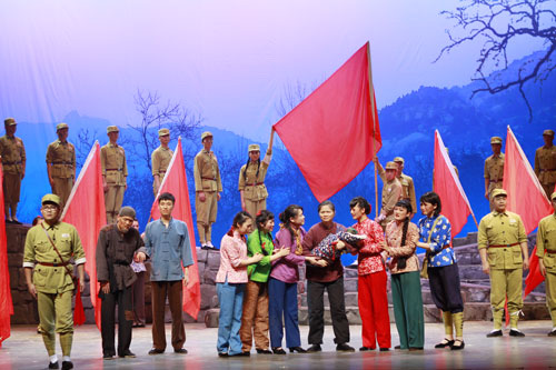 本剧是为纪念毛泽东《在延安文艺座谈会上的讲话》发表71周年,根据电影《沂蒙六姐妹》改编而成,以孟良崮战役为背景,讲述了沂蒙六姐妹带领全村人民无私忘我、积极支前的动人故事,生动刻画了淳朴、善良、坚强的沂蒙人民,深情诠释了感动中国的沂蒙精神。演出以其深刻的思想性、完美的艺术性以及真实唯美的人性化视角带给观众以心灵和视觉的双重震撼,现场观众无不为之动容。
