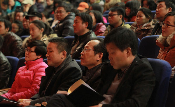 12月26日下午,长沙的天气骤然降温,学院实验剧场却暖意洋洋。省文化厅党组书记、厅长朱建纲同志为全院教职工、老同志代表、学生党员、入党积极分子及学生代表近800人作党的十八届三中全会《决定》学习辅导报告。报告会由学院党委书记鲁雁飞同志主持。学院院长沈继安同志,副院长周文清同志、杨向东同志,纪委书记兼工会主席彭爱莲同志聆听了报告。