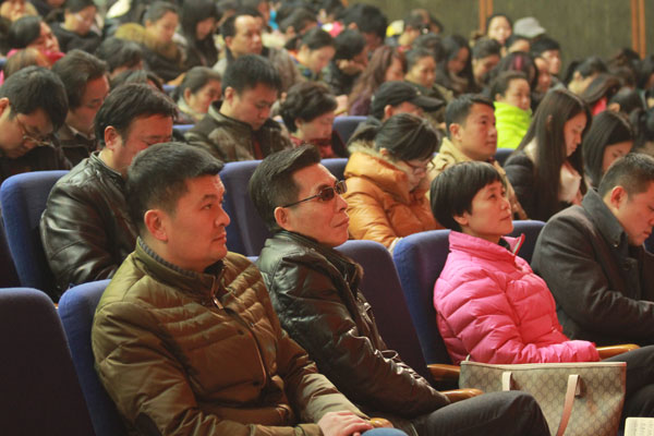 会场内大家聚精会神地学习报告