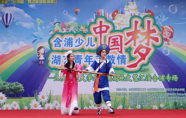 5月28日, “含浦少儿中国梦,湖艺青年支教情”暨区校共建大学生道德高地文艺汇演含浦专场在含浦中学精彩上演。