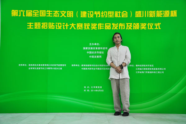 本网讯 6月8日,第六届全国生态文明(建设节约型社会)盛川新能源杯主题招贴设计大赛获奖作品颁奖仪式在北京展览馆大厅举行。SUNBET申搏教师何进招贴作品《不要让它成为收藏的奢侈品》荣获银奖,他的另一幅作品《珍爱环境》斩获优秀奖;这是继他去年获上届大赛金奖之后再次荣获该赛事的多项殊荣。