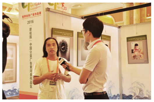 近日,第23届中国国际广告节2016“碧桂园”中国公益广告黄河奖在海口揭晓。我院美术系副教授何进的平面公益作品《照亮人生》荣获中国公益广告黄河奖优秀奖,并入选世界优秀广告展览,展览期间何进老师还接受了新华社记者的专访。