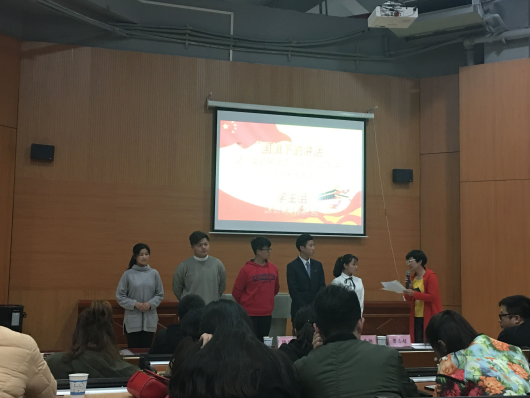 在南院校区比赛现场,刘书瑞等3位老师带领本班2名学生共同参加演讲比赛。经过紧张激烈的比赛,最终由刘书瑞老师赢得南院校区教师组第一名,张汝岱同学获得南院校区学生组第一名,他们将代表教师组、学生组于2017年4月在南院校区举行的升国旗仪式上进行演讲。