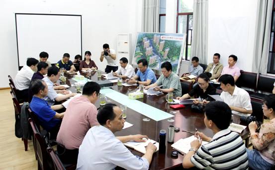 禹新荣同志一行对正在建设施工的教职工住宅区、图书办公楼、艺术教学楼、综合教学楼以及地下配套后勤服务中心进行了实地考察,并在搬迁扩建指挥部会议室听取了学院副院长余会春关于安全维稳工作、副院长兼搬迁扩建指挥部指挥长刘家海关于新校区建设工作的汇报。