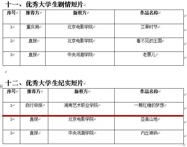 同时,影视系王密、周晓军老师指导,李丹等同学创作的《一颗红糖的梦想》摘获纪实短片奖(排名第一),排在第二、第三的分别是北京电影学院和中央戏剧学院。我院影视系两部作品斩获的重大荣誉填补了湖南高校在这一创作领域的空白。