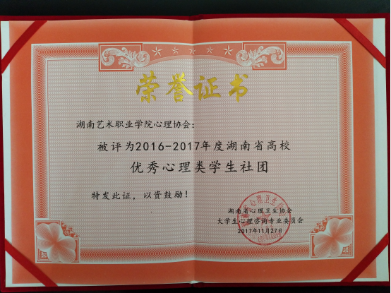 11月24日-26日,湖南省心理卫生协会大学生心理咨询专业委员会第十二届学术年会在长沙举行。会议对湖南省高校年度先进单位、先进个人和优秀社团给予了表彰。我院荣获“2016-2017年度湖南省高校心理健康教育先进单位”称号;我院心理协会荣获“2016—2017年度湖南省高校优秀学生社团”称号;学工处心育中心周柳叶老师荣获“2016-2017年度湖南省高校心理健康教育先进个人”称号。