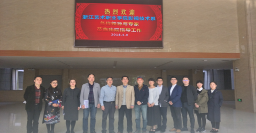 4月9日,浙江艺术职业学院影视技术系党总支书记、副主任彭云波一行8人来我院调研。学院党委书记王章华,社文系党支部书记蒋平,影视系党支部书记许丽英、主任戈力,副主任翟清、张舸等在松雅校区文化楼大厅热情地接待了来宾。