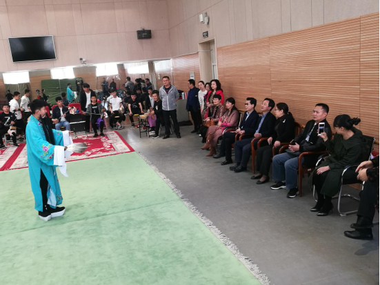 在王艳芳等的陪同下,考察团一行观摩了该院舞蹈精英小班排练课,学生们表演了古典舞基训片段、创编的“桃李杯”获奖群舞节目及舞剧《粉墨春秋》跷功、水袖等经典舞段。表演结束后,王章华应邀做了简短讲话,充分肯定了同学们的表演,勉励同学们珍惜时光,拼搏向上。随后考察团参观了学术报告厅、星光剧院及郭梅花剪纸工作室。