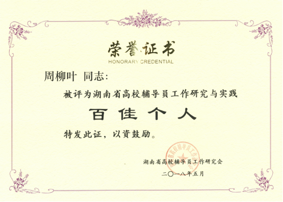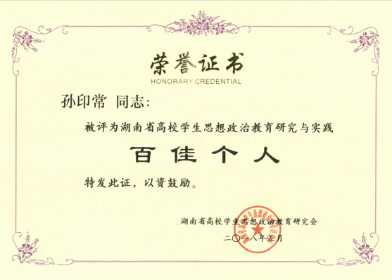 会议听取并审议了研究会年度工作报告,审议了研究会章程修订稿,表彰了研究会年度先进单位和个人,我院荣获“2017年湖南省高校学生思想政治教育研究与实践先进单位”称号,孙印常同志被评为“2017年湖南省高校学生思想政治教育研究与实践百佳个人”,周柳叶同志被评为湖南省高校辅导员工作研究与实践百佳个人”。