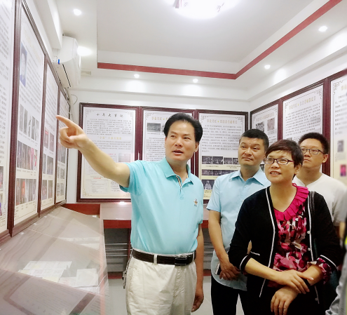 魏传宝现场介绍非遗陈列室及巴陵戏的传承与发展