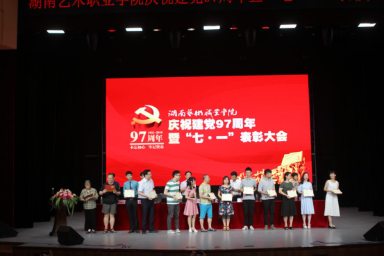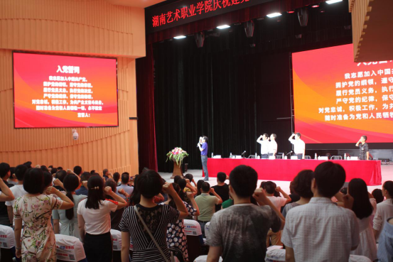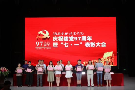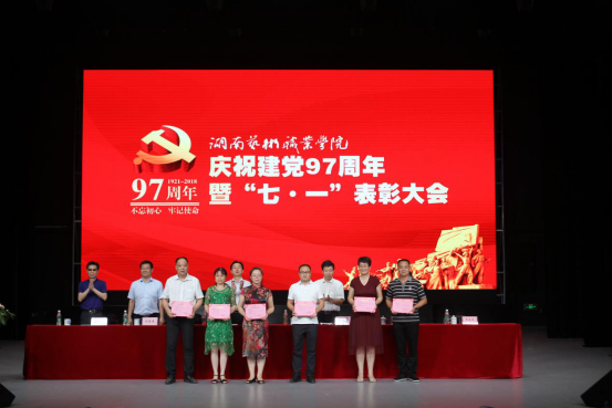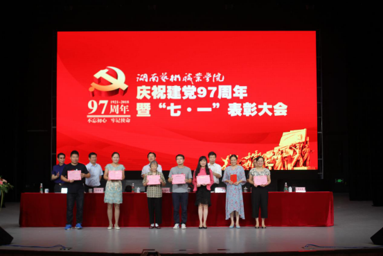 会议举行了重温入党誓词仪式,表彰了2016-2017年度优秀基层党组织、优秀党务工作者、优秀共产党员。参会领导为受表彰的先进基层党组织代表、党员代表颁奖。优秀基层党支部代表、音乐系党支部副书记杨翠红,优秀党员代表蒋蓉分别作了大会发言。随后,大会还为六、七月份入党的同志过政治生日,并给每个支部的党员代表发放了支部的“政治生日卡”。