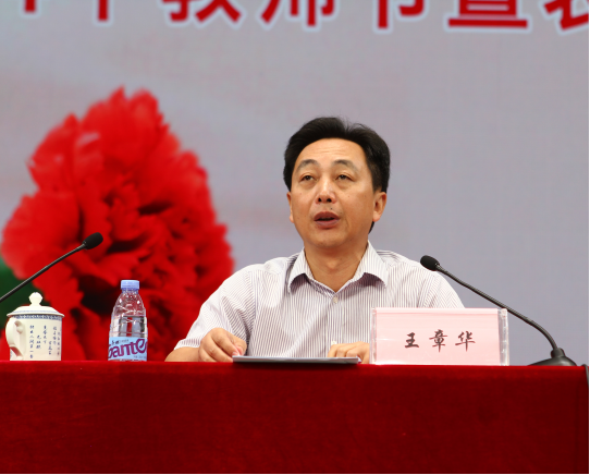 王章华同志首先代表学院党委、行政、全院师生,向长期以来大力支持学院发展的厅领导表示衷心的感谢,向辛勤耕耘在教学、科研、管理和服务一线的全体教职员工致以节日的祝福,向为学院改革、建设、发展作出突出贡献的老领导、老教师、老同志表示崇高的敬意,并向获奖的同志们表示衷心的祝贺。随后,王章华同志也对全院教职员工提出了四点希望:第一,坚定理想信念,做到思想引领。“德不近佛,不以为师;技不近仙,不以为师。”要坚定理想信念、涵养为师之德,向学生传递正确的人生观、世界观和价值观。第二,提升道德情操,率先垂范。要以德施教、以德立身。老师必须以身作则、率先垂范,先“立己德”再“树人德”,要求学生做到的,自己要率先做到,禁止学生去做的,自己要带头不做。第三,锤炼业务本领,追求德艺双馨。大学者,不是因为有大楼,而是因为有大师的缘故。我们的老师,应当具有一种危机感和紧迫感,要以本科院校教师的标准来严格要求自己、提升自己;要有一颗成为大师的心,不断追求、不断拼搏、不断锤炼;要瞄准“双一流”建设,站在知识发展的前沿,刻苦钻研,严谨笃学。第四,身怀仁爱之心,关爱学生。好教师应该是“仁师”,仁者爱人,有礼者敬之;好教师应该是“人师”,经师易得,人师难求,要将教师作为一种奉献、一份事业去追求;好教师应该是“友师”,要站在学生的立场,易位而处,将心比心,成为学生的良师益友。