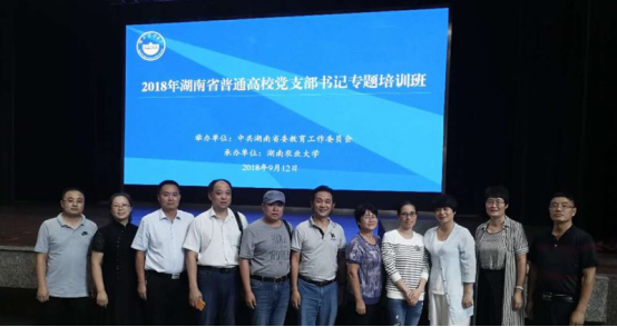 9月12日,全省高校党支部书记专题培训班在湖南农业大学开班,学院11个党支部的书记、副书记入班参加培训。