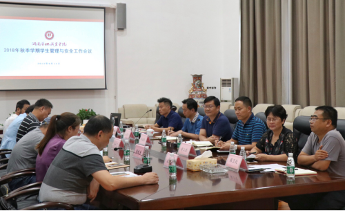 9月13日下午,学院在综合楼208会议室召开2018年秋季学期学生管理与安全工作会议,院党委书记王章华出席会议并讲话,院党委副书记、副院长余会春,院党委办(宣传统战部)、学工处、保卫处、总务处负责人,各专业系党支部书记、主管学生工作副主任(主任助理)及相关工作人员参加了会议。会议由余会春主持。