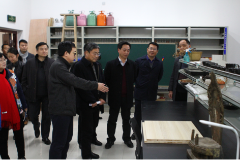 汇报会开始前,禹新荣在王章华、张勇等领导的陪同下,专程到雅艺楼204(学院文明高校创建办公室)查看学院文明创建自查自评材料。