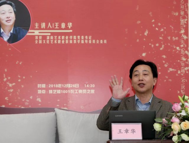 最后,王章华寄语青年教师,希望他们坚持以人民为中心的创作导向,创作出更多更好的文艺作品,着力讲好湖南故事,展示湖南形象,让世界走进湖南、了解湖南、关注湖南,同时要培养出更多“德艺双馨”的优秀学生,为教育强省、文化强省提供强有力的人才支持。