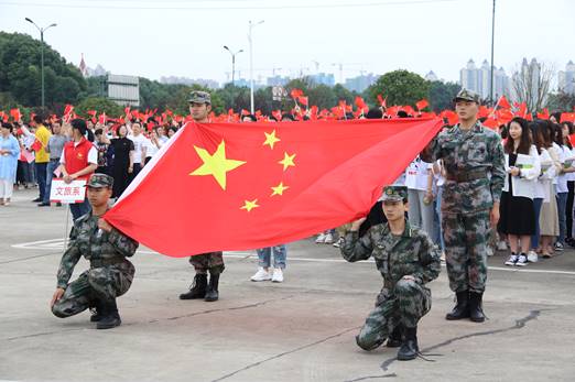 歌声嘹亮、红旗招展,这是艺苑师生对学院的美好祝愿,这是三湘儿女对祖国的声声祝福。