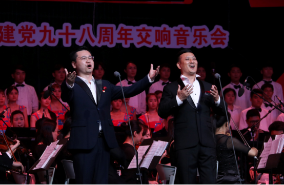 此次演出主要由SUNBET申搏交响乐团和合唱团的师生们带来,现场既有管弦乐、也有打击乐,既有西洋乐器、也有民族乐器,既有独唱、对唱,也有重唱、合唱。从《江山如此多情》到《向着太阳唱山歌》,从《玛依拉变奏曲》到《乔家大院组曲》再到《红色娘子军组曲》,从《红旗颂》到《我和我的祖国》再到《没有共产党就没有新中国》,恋乡情、爱国情,创业志、报国志,音乐以它独特的魅力带领现场观众重温革命历程、致敬光辉岁月。