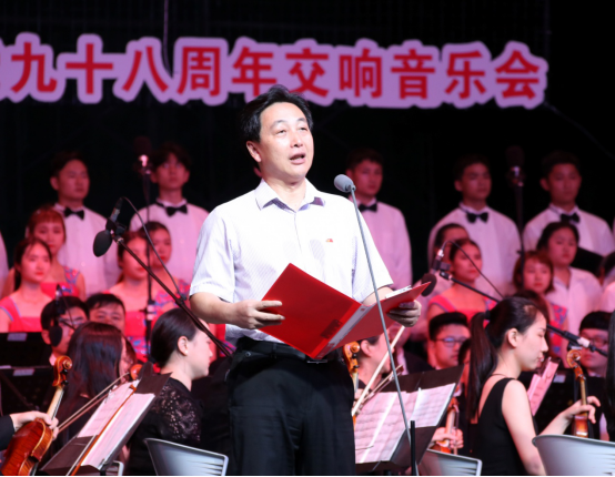 王章华致欢迎辞。他代表学院党委、行政,向党员同志致以节日的祝福,向各位领导、嘉宾、媒体朋友致以热烈的欢迎,向参与交响音乐会的全体演职人员致以衷心的感谢。他深情回顾了中国共产党建党98周年以来的光辉足迹,特别是党的十九大以来以习近平总书记为核心的党中央挺立时代潮头,推动全面从严治党纵深发展、引领中国特色社会主义迈入新时代的伟大实践。他表示,在党的坚强领导下,SUNBET申搏建校至今历经近70年沧桑巨变,全体湖艺人和衷共济、拼搏奋进,推动各项工作不断改革发展,如今学院学科门类齐全、大师名家荟萃、优秀校友辈出,在美丽的松雅湖畔又开启了跨越发展的崭新篇章。