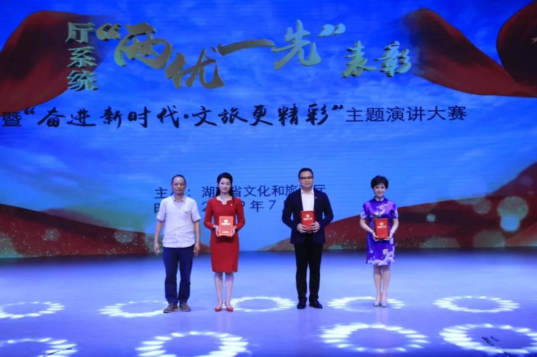 随后,“不忘初心、牢记使命——奋进新时代文旅更精彩”主题演讲大赛决赛精彩上演。来自省文化旅游战线的12名参赛选手紧扣主题,结合工作实际,用声、用心、用情将爱国、爱党、爱岗的初心表达得淋漓尽致,充分展示了湖南文化旅游工作者的精神风貌。