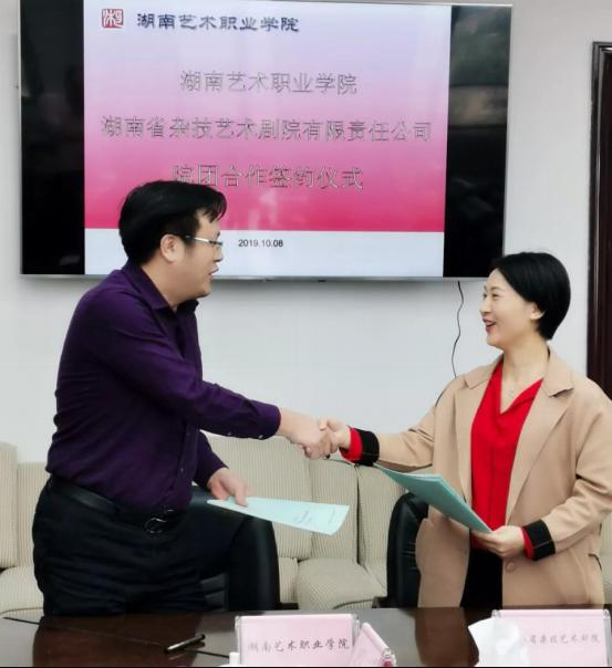 10月8日下午,学院与湖南省杂技艺术剧院有限责任公司在博艺楼915会议室举行校企合作签约仪式。湖南省杂技艺术剧院有限责任公司党总支书记、董事长、总经理赵双午,党总支委员、副总经理汪建军、黄亮,国际培训部主任许畅,人力资源部副主任孙容,学院院长张勇、副院长黄新平、院长助理兼财务处处长张野出席了签约仪式。张野代表学院与湖南省杂技艺术剧院有限责任公司签订了校企合作协议。学院发展规划处、招就处、教务处、学工处、实训处、戏剧系等部门相关负责人参加仪式。仪式由发展规划处处长蒋平主持。