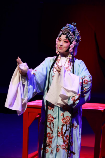 展演过程中,现代与古代交错,时间与空间重叠,仿佛一次穿越古今的对话,观众们置身其中,被这种似梦非梦,似镜非镜的审美效果所震撼,获得了极大的视觉和听觉享受。整场展演以“沉浸式”的方式展现,观众们能够直接感受到一个个倩姿靓影从戏中缓缓走进身边,演员们身姿优雅、唇红齿白,唱腔婉转、回盼流波。
