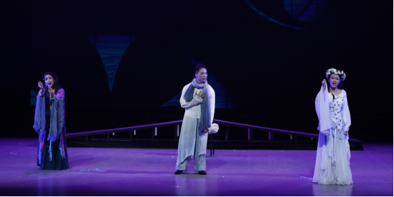 本场演出对中国知名原创音乐剧《蝶》进行了校园化的改编,全剧将人们熟悉的“梁山伯与祝英台”的故事作了全新的阐述,以有情人难成眷属的命运悲剧为内核,巧妙地融入了现代人对生命、对爱情的深刻思索。故事聚焦受诅咒的“蝶人”族群,将蝶人少女祝英台与流浪诗人梁山伯的爱情悲剧娓娓道来,探讨了人性的自私与真爱的无私。音乐剧专业的毕业生们以精湛的技艺致敬经典、感恩母校。