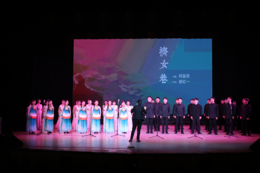 整场晚会由“音才乐梦”“腔韵萃彩”“声歌绽放”单个篇章共13首作品组成。第一篇章“音才乐梦”由音乐表演专业器乐方向的毕业生带来,其中钢琴独奏《张帅前奏曲之三》从低音到高音,悠扬的乐符像散落的珍珠,给人无限遐想;女声独唱《卜算子.咏梅》,表演者用清脆嘹亮的歌声,歌颂了梅花不畏寒冷、坚强不屈的精神;笛子独奏《走进快活岭》向观众呈现了东岳泰山的无穷魅力;室内乐演奏《丝竹花语》曲调婉转、旋律优美,倾述动人故事,表达喜悦之情。第二篇章“腔韵萃彩”将戏曲声腔、桑植民歌、歌剧表演等元素融为一体,极富湖湘地方特色,其中,湖南花鼓戏联唱将《野菊花》《中秋调》《五更留郎》串联展现,曲调自然悦耳,花鼓韵味十足;音乐剧《钢的琴》用声音唱出情节,讲述一段动人故事;《欢乐苗寨》则用女声小组合唱的形式,将苗族民歌与优美舞蹈相结合,画面清新,歌声婉转;桑植民歌《澧水摇撸号子》用高扬的歌声表现摇撸汉子豪迈的性格;歌剧片段《小二黑结婚》赞扬斗争精神、歌颂纯洁爱情。第三篇章“声歌绽放”主要呈现声乐表演类节目,其中女声独唱《华阴老腔一声喊》沉郁悲壮、粗犷豪迈;小合唱《挤女巷》由音乐系主任何益民教授原创编排,讲述发生在小巷里的爱情故事;小组唱《八百里洞庭美如画》通过男声合唱,展现洞庭鱼米稻香的美丽画卷;大合唱《唱支山歌给党听》用质朴的山歌讲党史、颂党恩,向建党百年献礼。