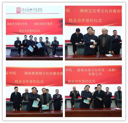 湖南省演艺集团、湖南宝宝秀文化传媒有限公司、湖南鹿视频文化传媒有限公司、蓝海众浪文化科技(成都)有限公司的相关负责人也分别发言,均表示希望以本次签约为契机,进一步深化校企合作,形成更紧密的合作模式,同时在产学研合作方面不断深化合作。