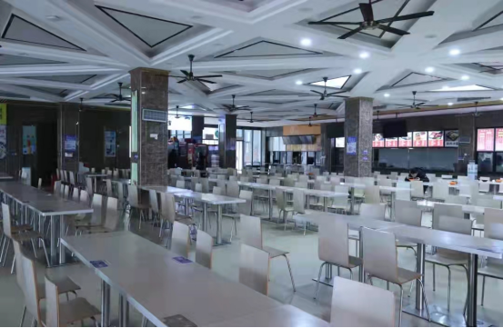 校内对食堂、超市等场所进行全面、彻底消杀,对工作人员进行疫情防控知识培训。加强防疫物资供应,为图书馆、食堂、宿舍和教学楼等教学和生活公共区域配备充足的酒精和洗手液,保证校内口罩供应。食堂内严格按“一米线”排队、就餐。
