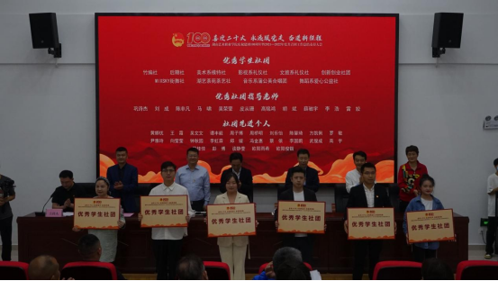 王章华充分肯定长期以来学院团学工作取得的成果,并向此次受到表彰的个人和集体表示祝贺,向全院青年教师、青年学生致以亲切问候和美好祝愿。他结合中国共产主义青年团100年栉风沐雨的发展史,强调了当今青年人肩负的历史使命,对大家提出四个方面要求:一是要立大志,要坚定不移听党话、跟党走,在青春赛道上跑出最好成绩。要在担当中历练,在实践中成长,把个人理想同国家前途、民族命运紧紧结合在一起,以青春之我、奋斗之我,为民族复兴添砖加瓦。二是要明大德,要守住底线、立德修身,始终充满正能量。要把忧国忧民之心、爱国爱民之情融入到民族复兴的时代主题创作中,以文铸魂、以文化人,全方位全景式展现新时代新气象,展现时代精神和民族特色。三是要成大才,要勤学善思、练就过人本领,成为“德艺双馨、敢为人先”的文艺工作者。要对“躺平”说不,克服慵懒散、等靠要的陋习,持续学习新时代党的创新理论,深入学习专业如识,勤学苦练专业技能,传承弘扬中华优秀传统文化。四是要担大任,要勇立潮头、奋力搏击,在建设文化强国中建功立业。要在担当中历练,在尽责中成长,保持初生牛犊不怕虎、越是艰险越向前的刚健勇毅,让青春在新时代改革开放的广阔天地中绽放,让人生在实现中国梦的奋进追逐中展现出勇敢奔跑的英姿。
