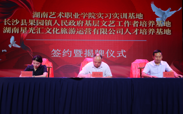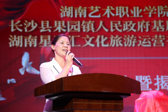 王玲代表长沙县果园镇致辞。她表示,本次校地企合作将凝聚学校、政府、企业三方力量,合作开发好文旅项目,输送培育更多文艺英才,共同打造实训基地样板,为果园镇文化旅游融合发展书写新的篇章。