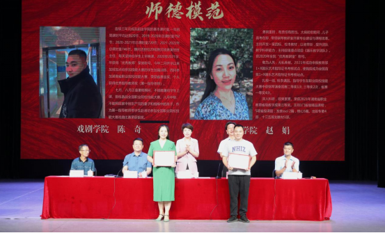 师德模范、优秀教师、优秀教育工作者上台领奖