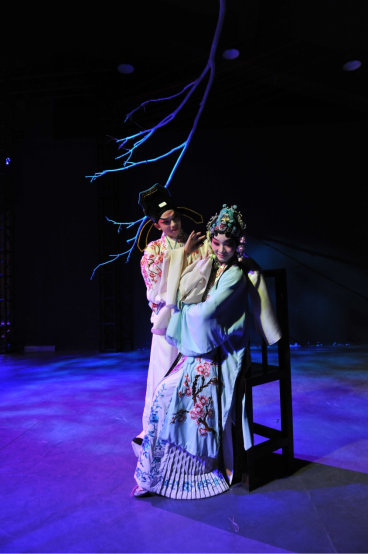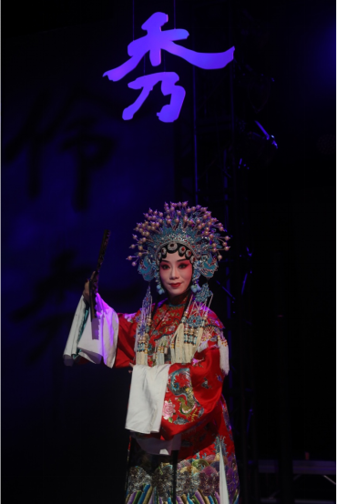 本次展演采用极富东方美学意蕴的沉浸式艺术表演方式,将空间装置、舞台灯光,戏曲身韵、念白,戏曲服装、化妆等艺术样式融合创新,将戏曲人物的妆容之美、身韵之美、服饰之美展现得淋漓尽致,是一次现代与古代、时间与空间的生动对话,使观众在视觉和听觉上都获得极大的满足和享受。