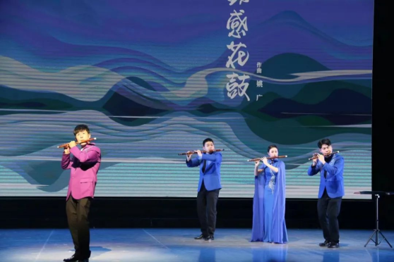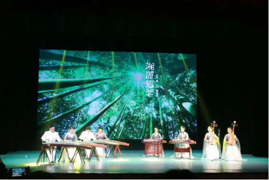 演奏部分,室内乐重奏《风华昭昭》源于民间歌曲《一根竹竿容易弯》,该曲将西洋乐器与中国民族民间音乐巧妙结合,打破了中西音乐的界限,呈现了“国潮”的魅力。竹笛重奏《动感花鼓》清脆激昂,笛声中依稀可见湘江两岸的秀丽春光。弹拨乐重奏《湘麓遐想》融合古筝曲、琵琶曲、扬琴曲的精髓,采用多种器乐演奏,仿佛站立麓山之巅看湘水奔涌,令人浮想联翩。